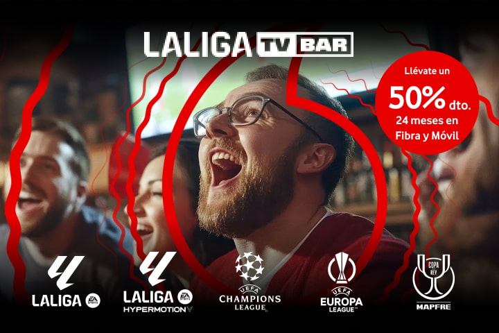 Vodafone TV Bares incluye todos los partidos de LALIGA EA SPORTS, LALIGA HYPERMOTION, Copa del Rey Mapfre, PRIMERA FEDERACIÓN Versus E-Learning, UEFA Champions League, UEFA Europa League, UEFA Conference League y la UEFA Youth League.