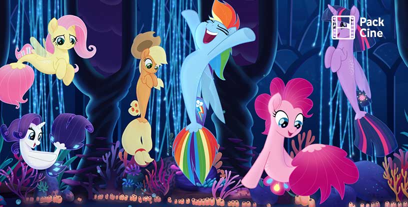 Se unirán a las ponis de la serie de televisión My Little Pony: la magia de la amistad, que adoran los fans, nuevos personajes como la Comandante Tempest, una poni conflictiva y enrevesada que no sabe muy bien cuál es lugar en Equestria; Grubber, el ingenioso soldado de la Comandante Tempest con un apetito insaciable; la Princesa Skystar, una poni aristócrata y nerviosa que tiene ansias por vivir aventuras; la Reina Novo, la protectora madre de Skystar, que ha tenido que aprender a soltar las riendas con su hija; la Capitana Celaeno, una cacatúa osada que lidera a una banda de aventureros variopintos; el encantador y canalla Capper, un gato callejero que se las sabe todas; y el Rey Storm, un misterioso (y quizá peligroso) mago, cuyo maléfico plan incluye robar algo de la magia de las ponis.