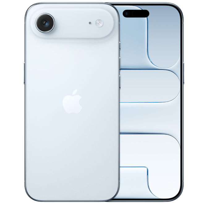 El iPhone más fino jamás creado. Pantalla de 6,5 pulgadas, Ceramic Shield ultrarresistente delante y detrás, chip A19 Pro, sistema de cámara Fusion de 48 Mpx y cámara frontal Center Stage.