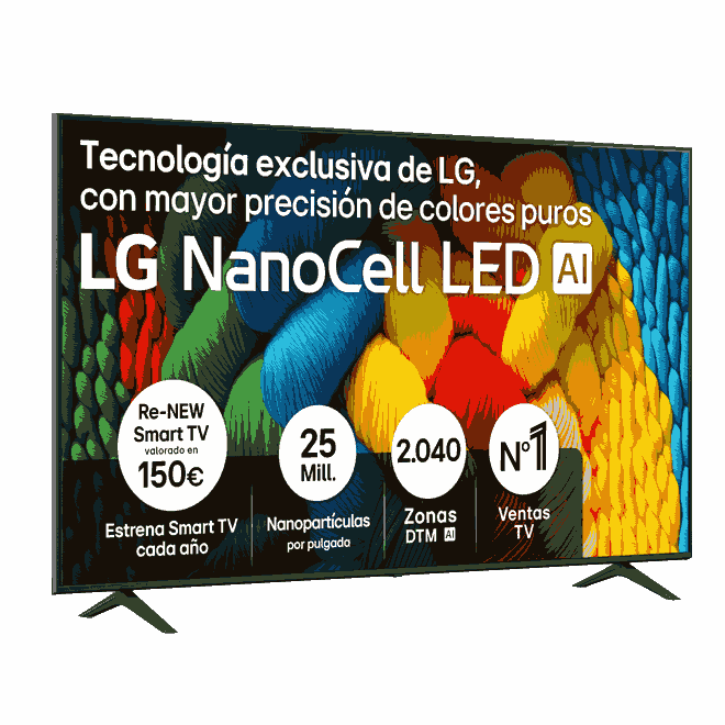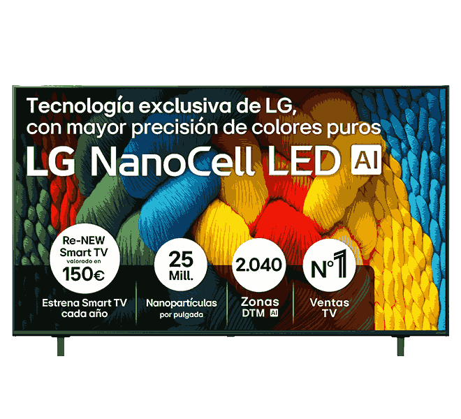 Mayor precisión de colores puros gracias a las 25 millones de nanopartículas por pulgada de NanoCell LED, tecnología exclusiva de LG