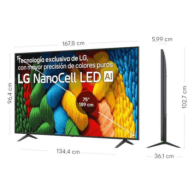 | Pantalla | Tamaño 75"Resolución 3840 x 2160Tipo de pantalla PANEL Nanocell 4K |